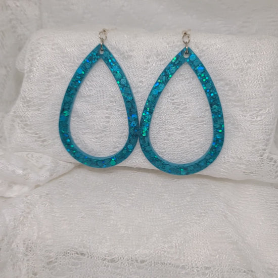 Aqua Blue Chunky Glitter Larger Teardrop Hoop Earrings