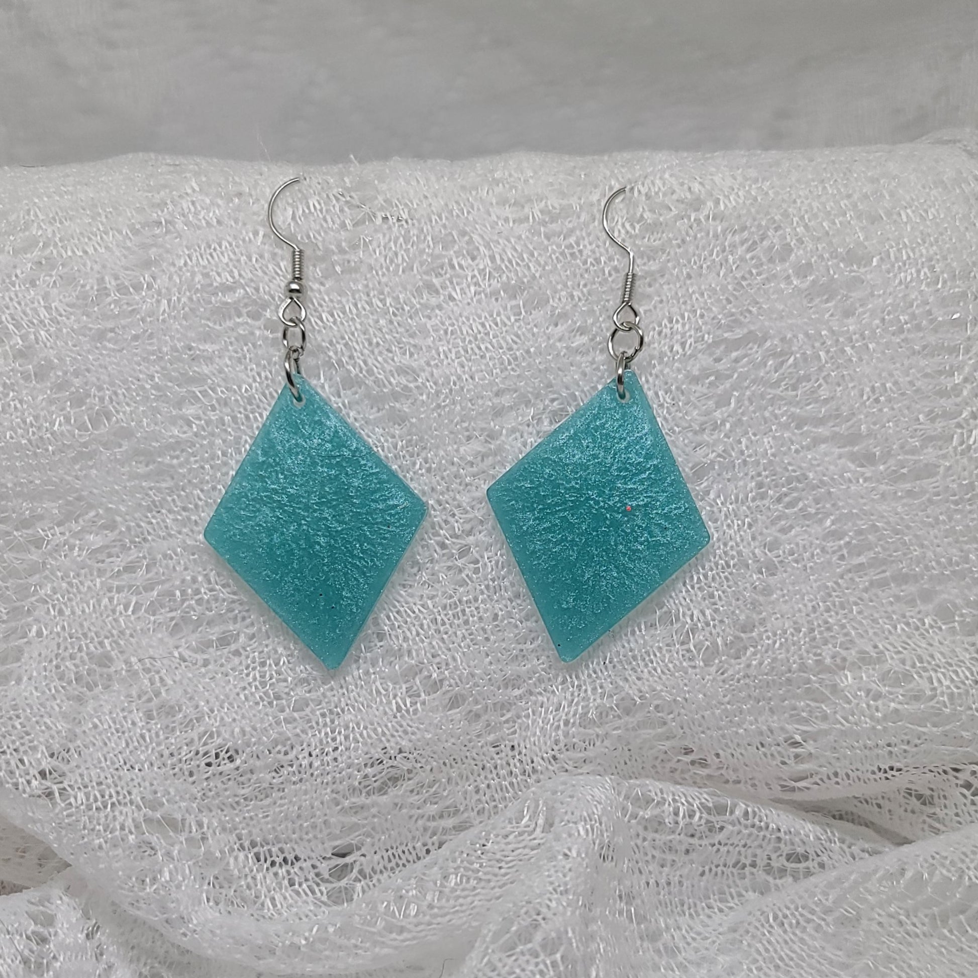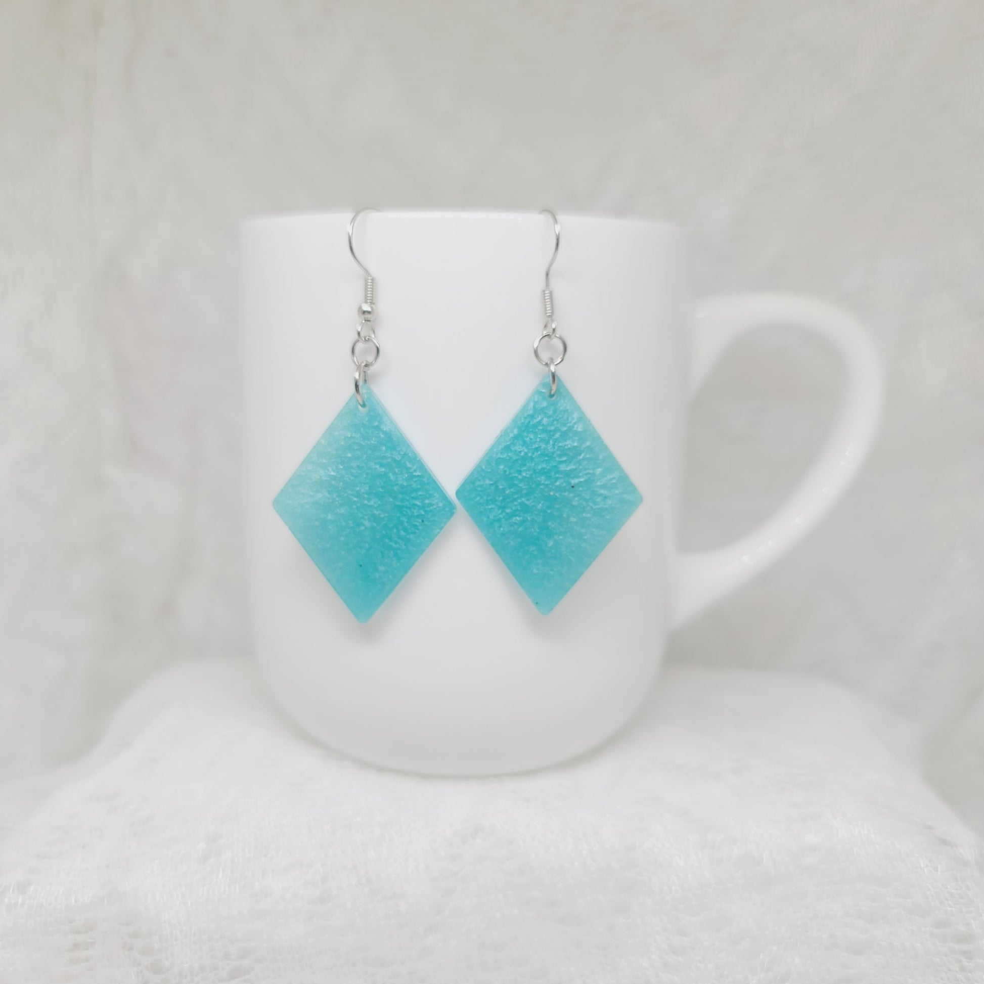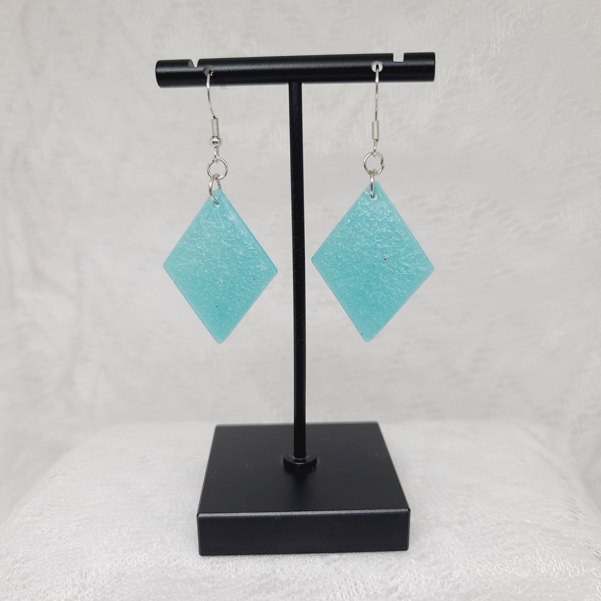 Aqua Blue Triangle Dangle Earrings, Diamond Shaped Blue Glitter