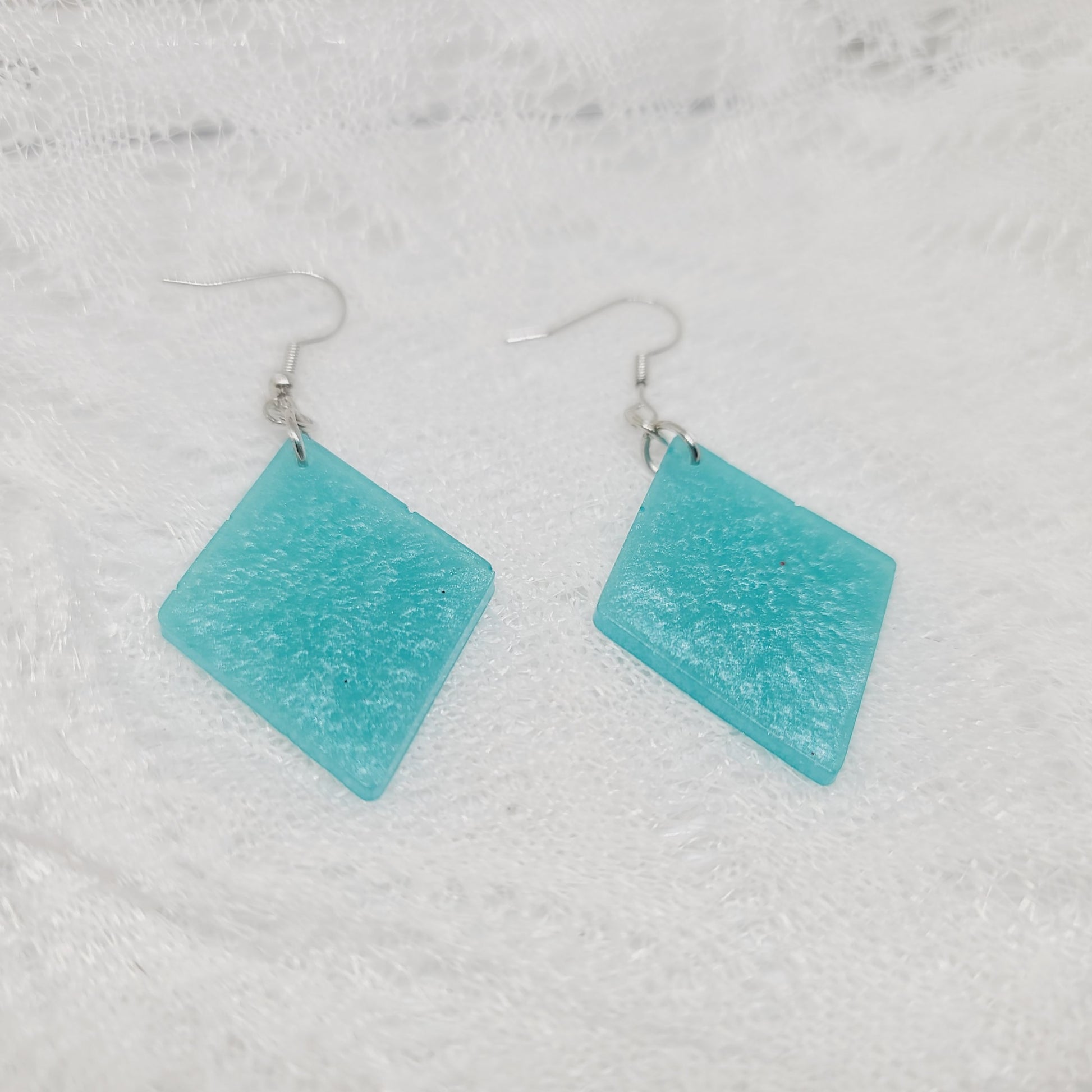 Make a statement with these dazzling Aqua Blue Triangle Diamond Dangle Earrings! Show off your sparkling, diamond-like blue glitter and make any outfit pop with these beauties! Add a touch of playful elegance to your look! 💎