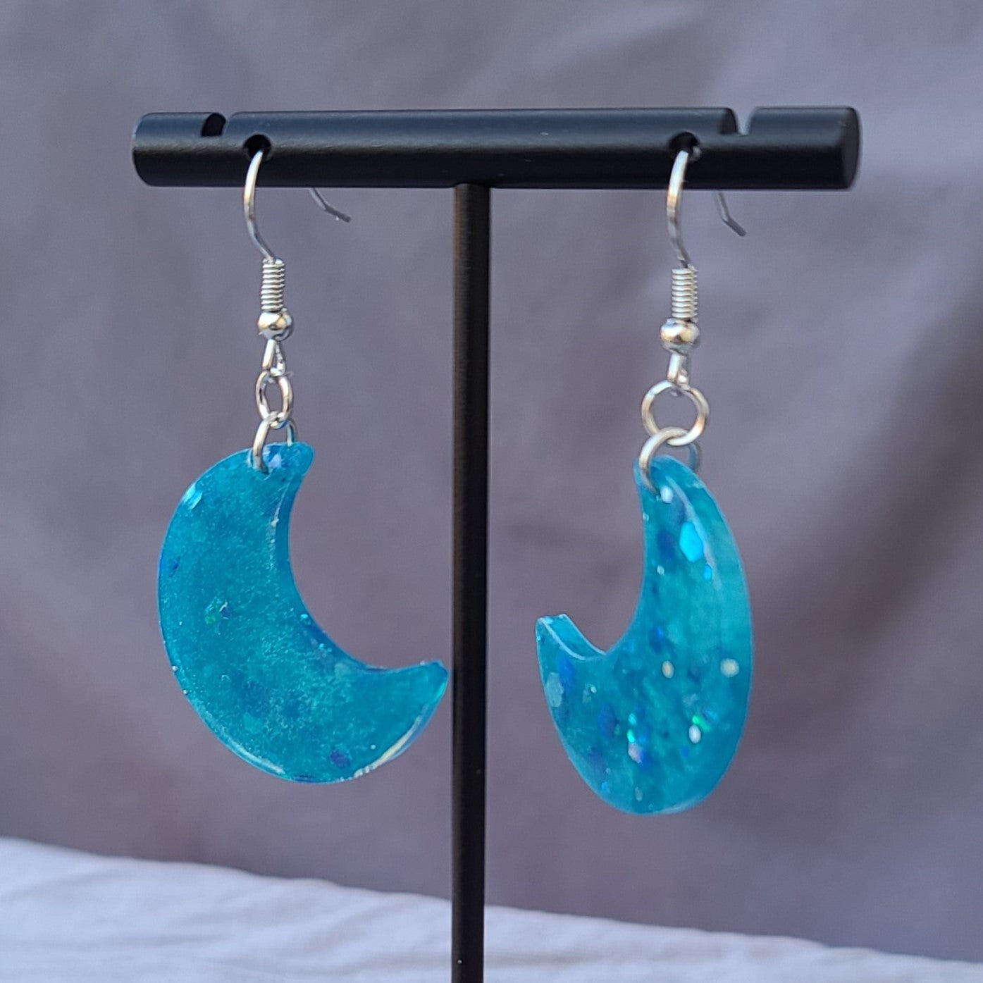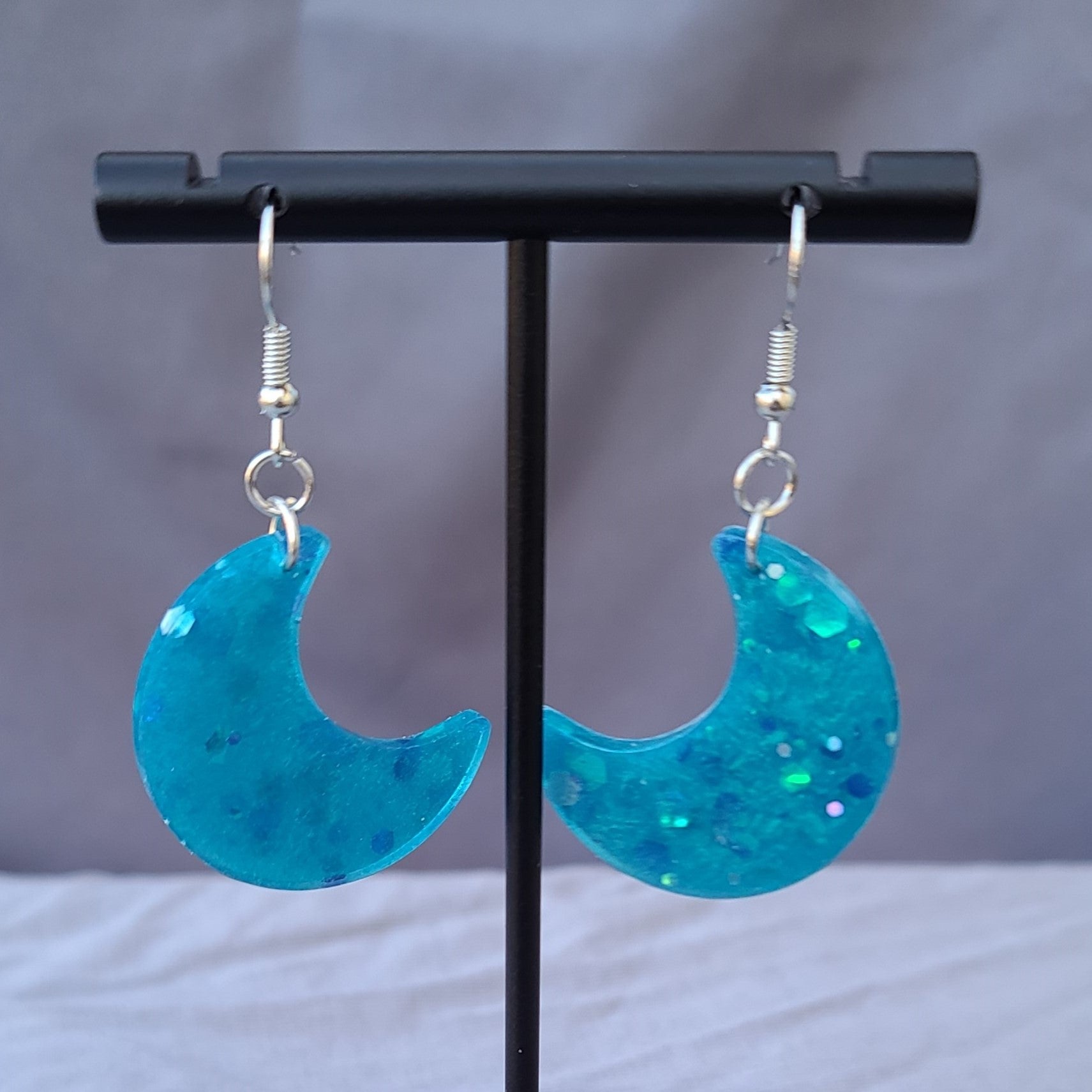 These Blue Glitter Moon Dangle Earrings are the perfect way to light up the night! Made with shimmering glitter, they'll make sure you sparkle like the star you are! So don't hesitate to make a wish and swoop in to purchase a pair - the universe will thank you!
