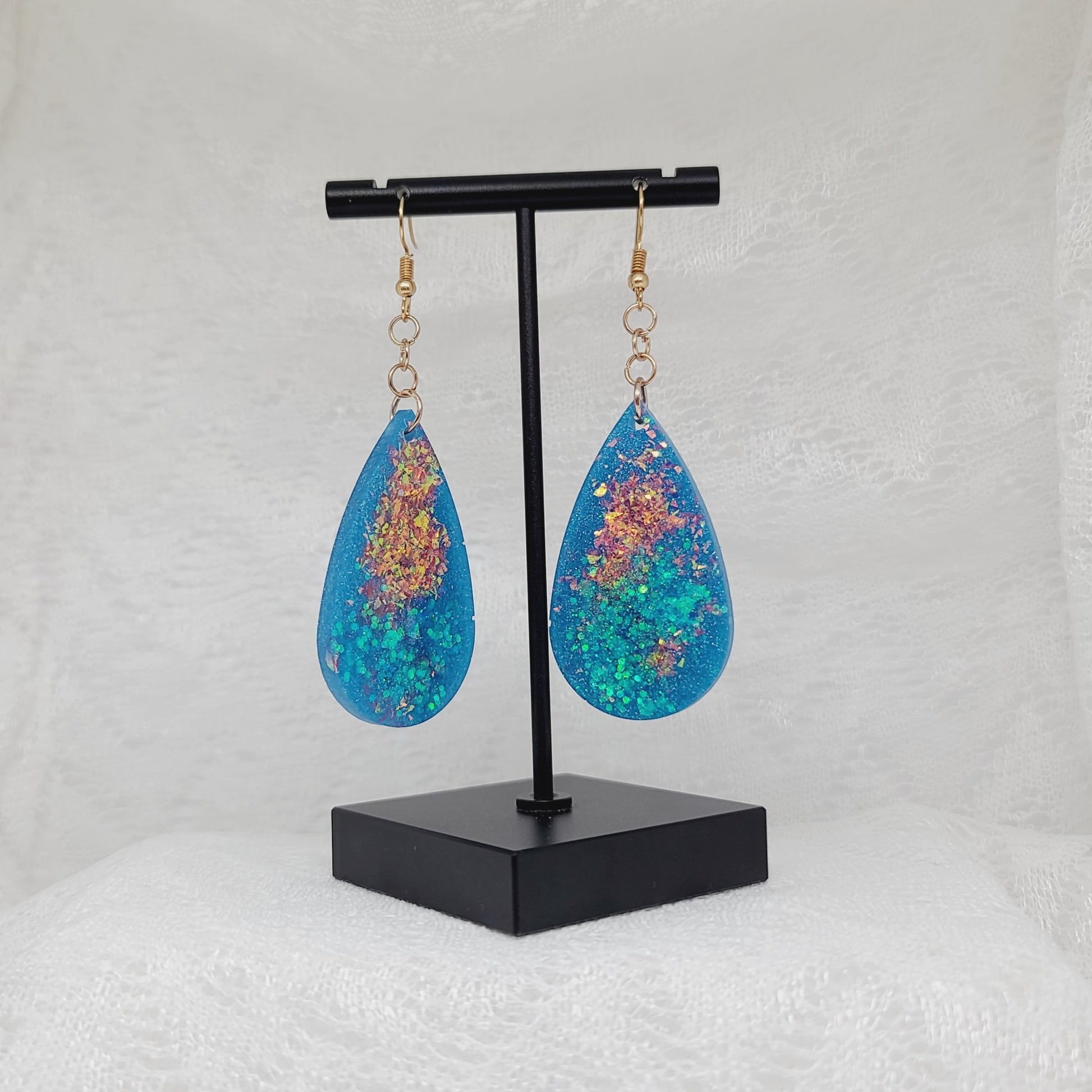 Blue, Pink/Rose Golden Teardrop Dangle Earrings