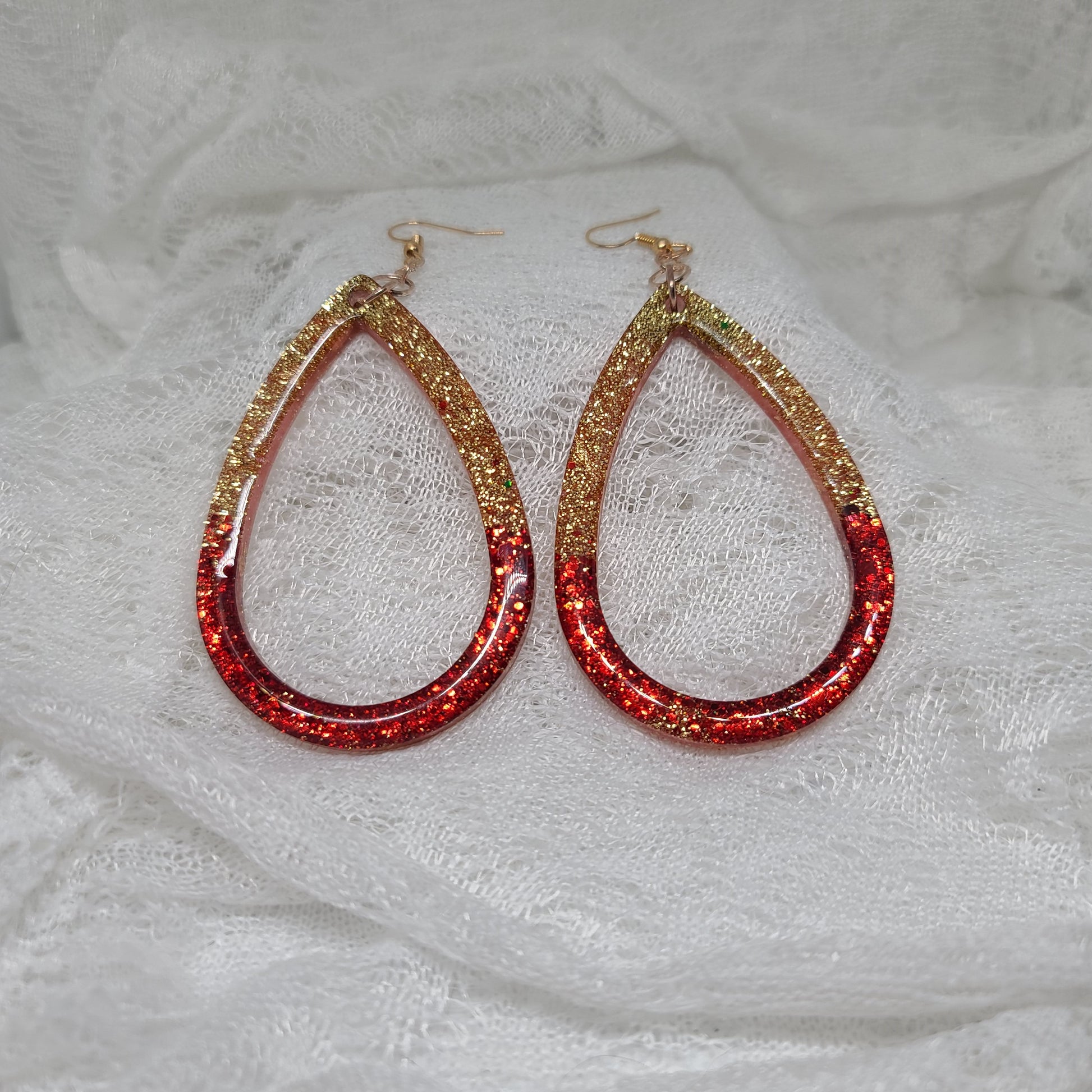 Red & Gold Glitter Large Hoop Teardrop Earrings
