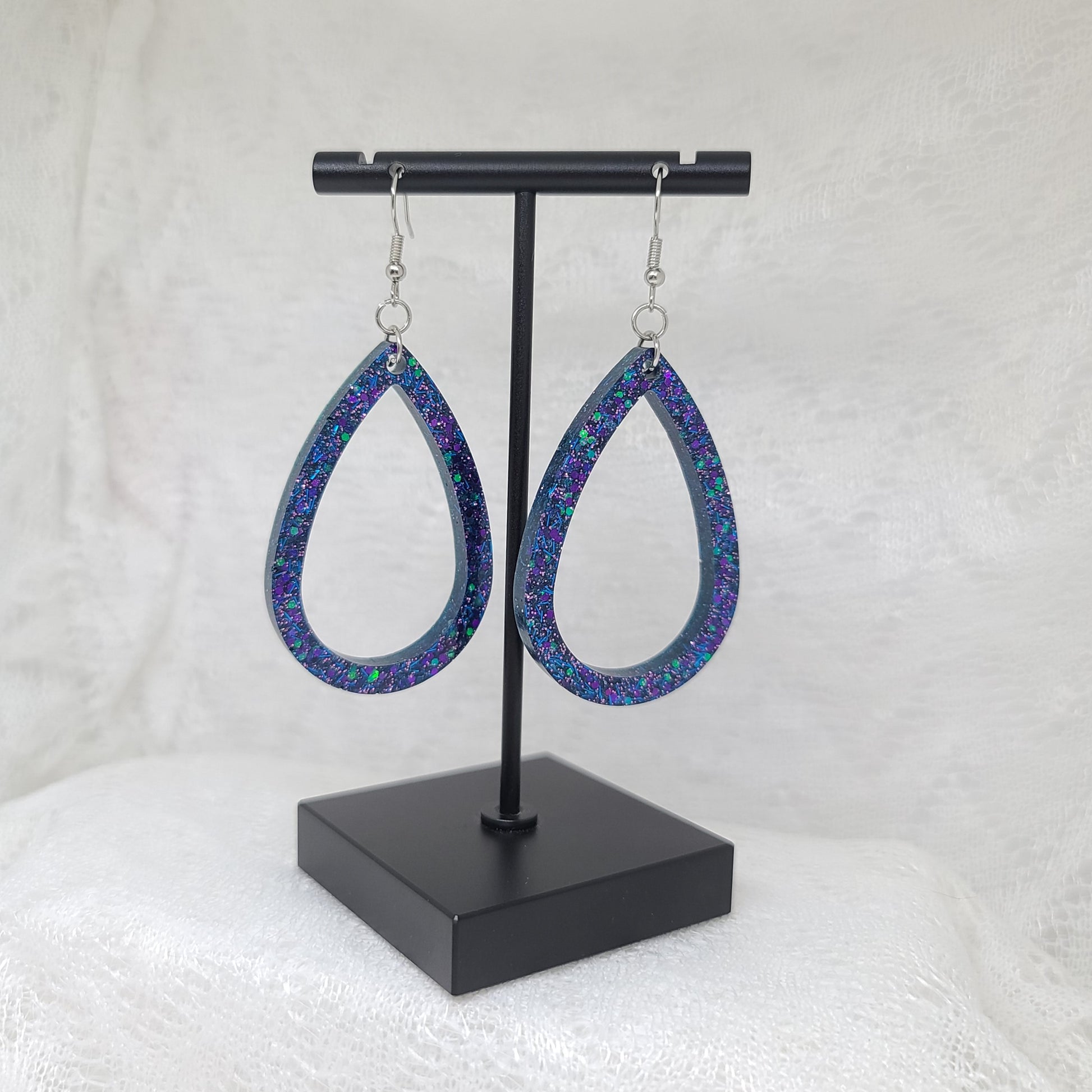 Galaxy Purple, Black & Blue Teardrop Hoop Dangle Earrings