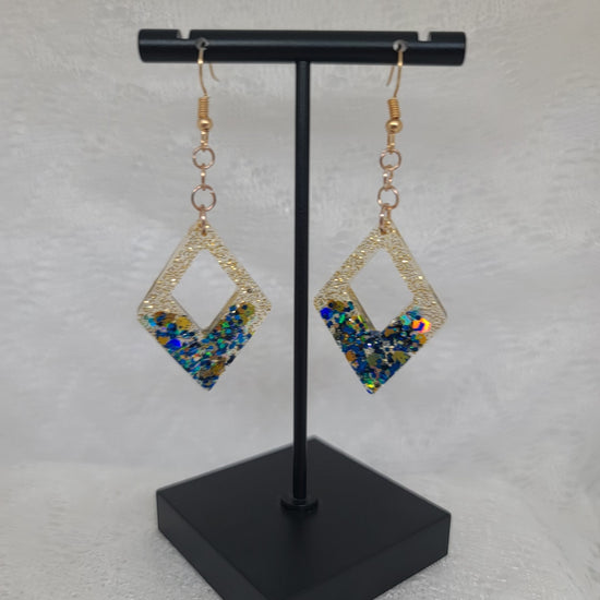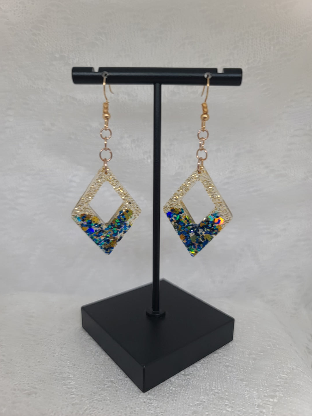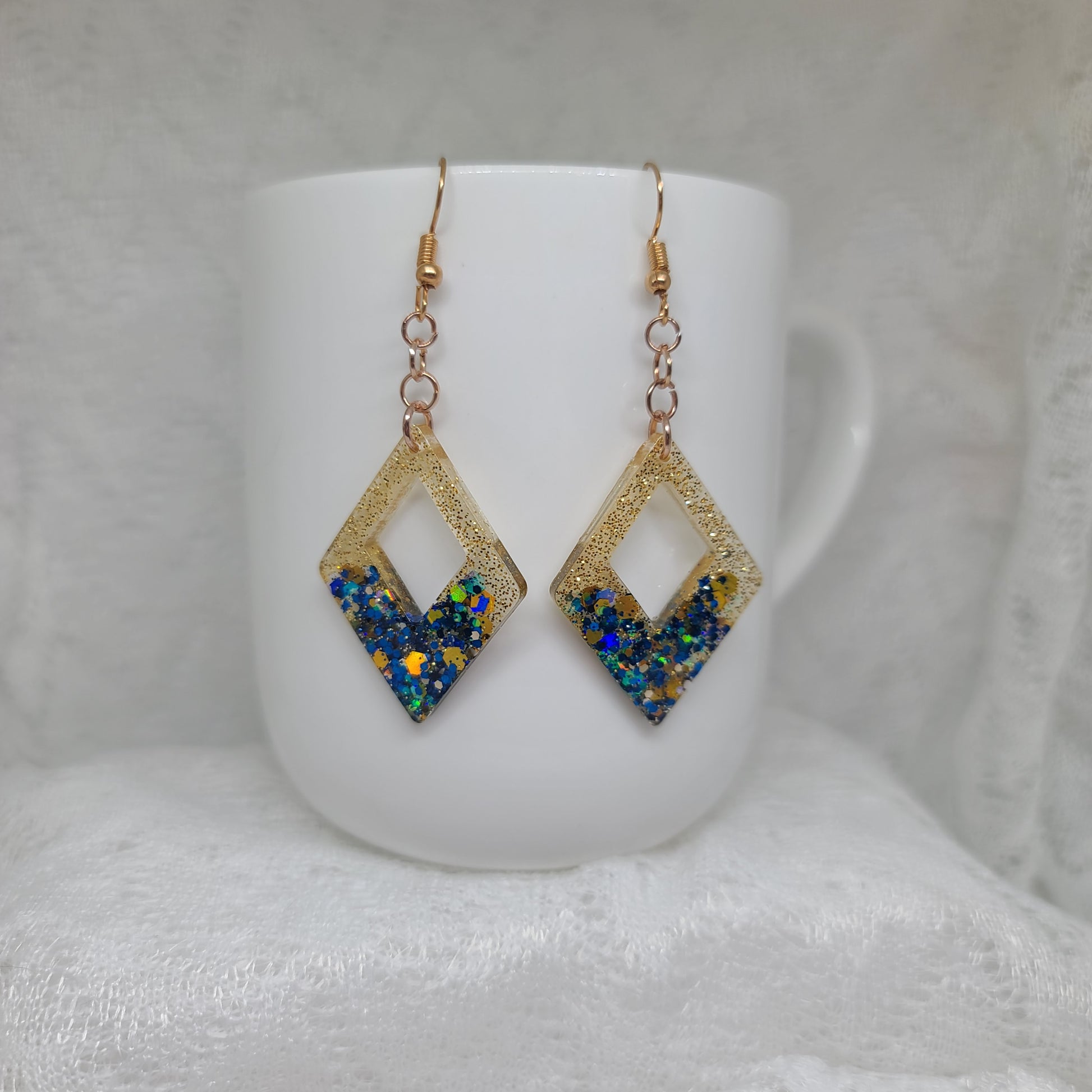 Gold & Blue Chunky Glitter Triangle Dangle Earrings