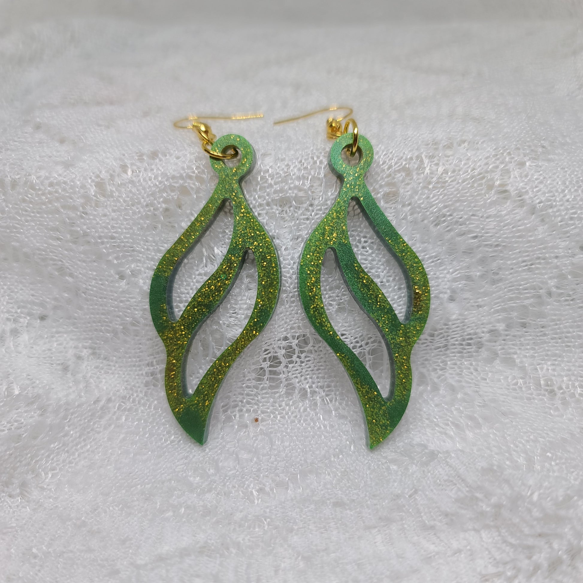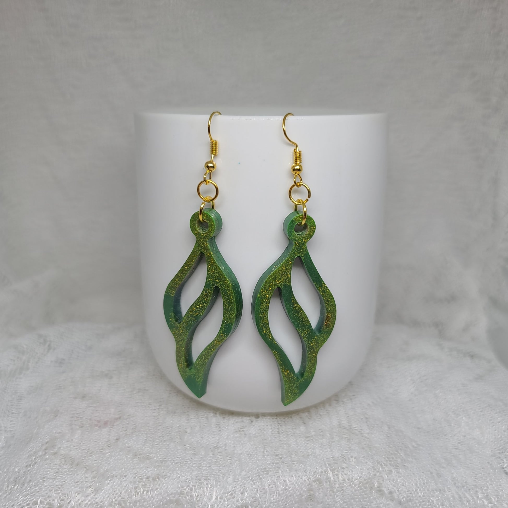 Green & Gold Feather Wing Shaped Dangle Earrings