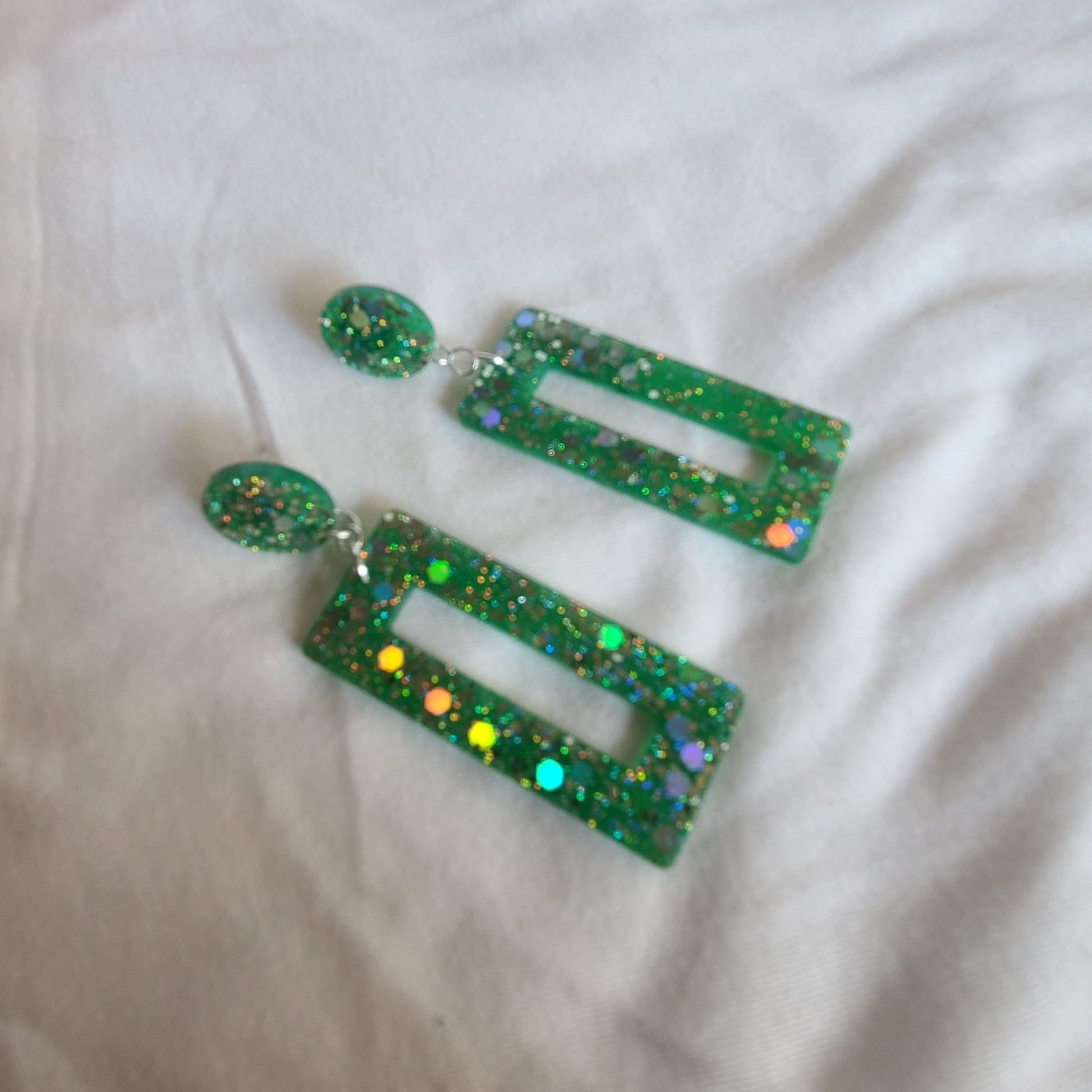 Shine brighter than the stars in these dazzling Green & Silver Glitter Rectangle Dangle Earrings! From the glittery silhouette to the lightweight design, it's the perfect ear candy to up your style game! So, dazzle them! (Before they have a chance to blink!)