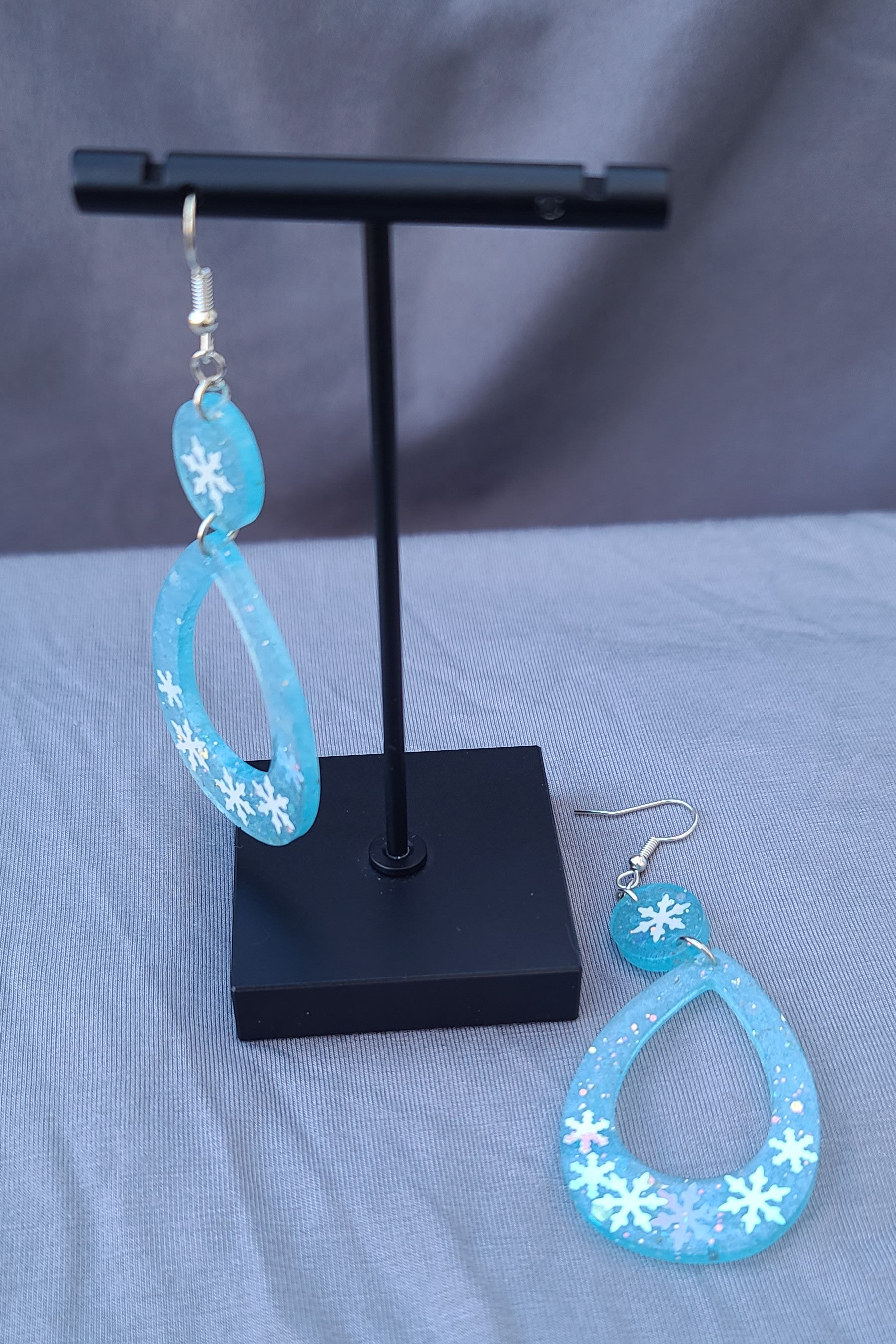 Light Blue Snow Flake Teardrop Dangle Earrings