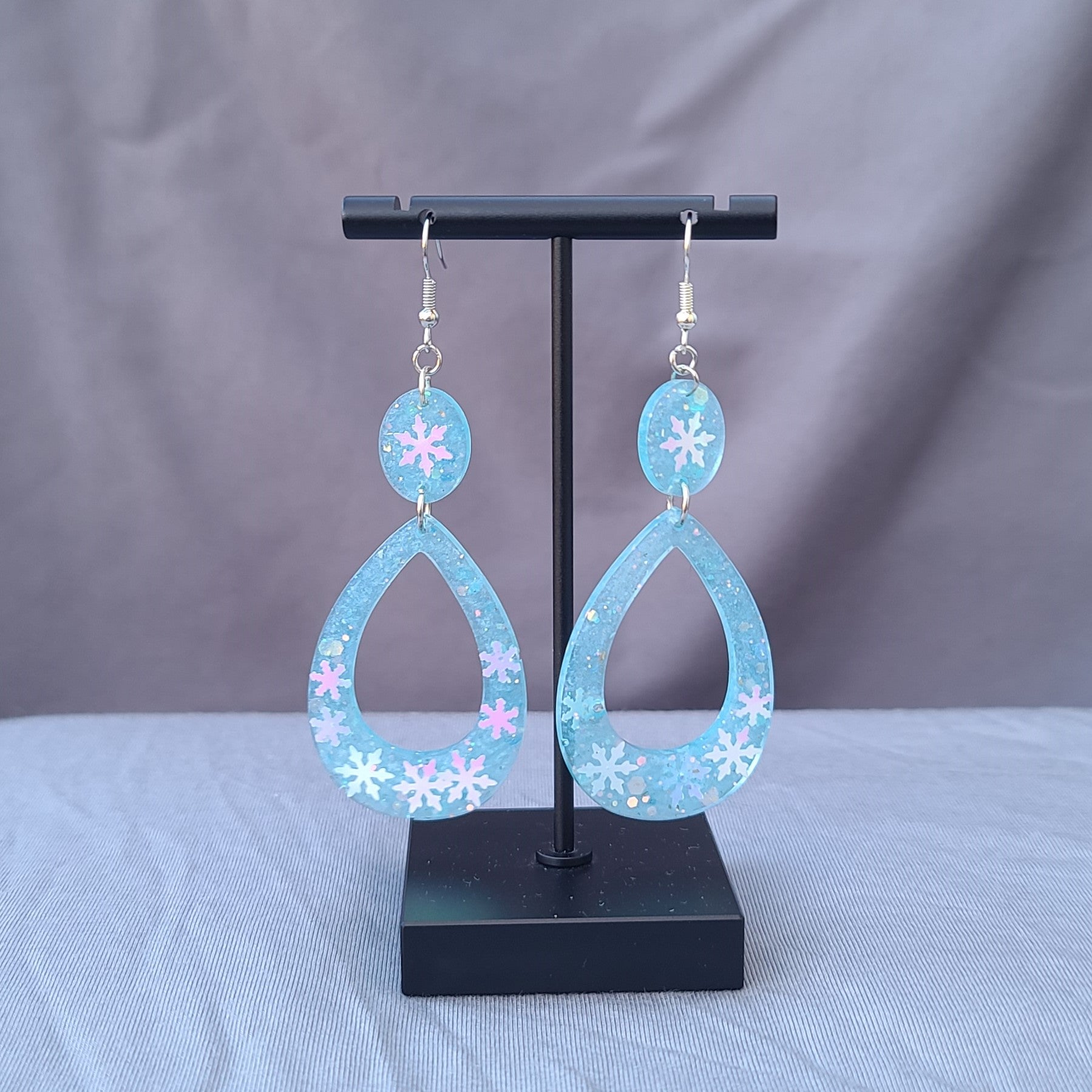 Light Blue Snow Flake Teardrop Dangle Earrings