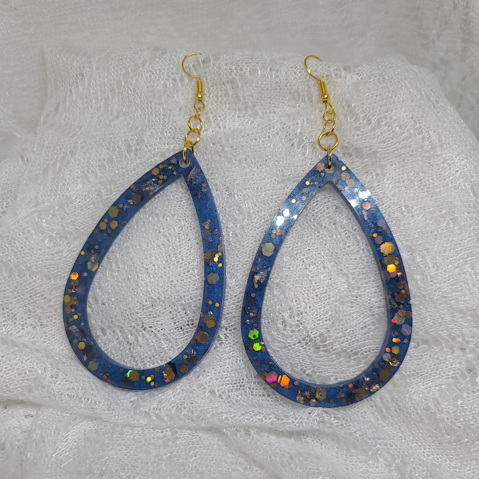 Navy Blue & Gold Glitter Large Hoop Teardrop Earrings
