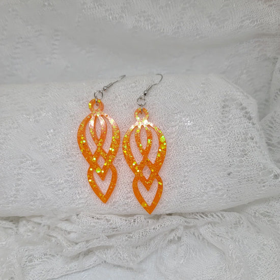 Shine bright like an orange! These Orange Glitter Chandelier Dangle Statement Earrings are here to help you sparkle and shine. They make a subtle but powerful fashion statement - a must-have for any jewelry collection. Ready, set, GLITTER!