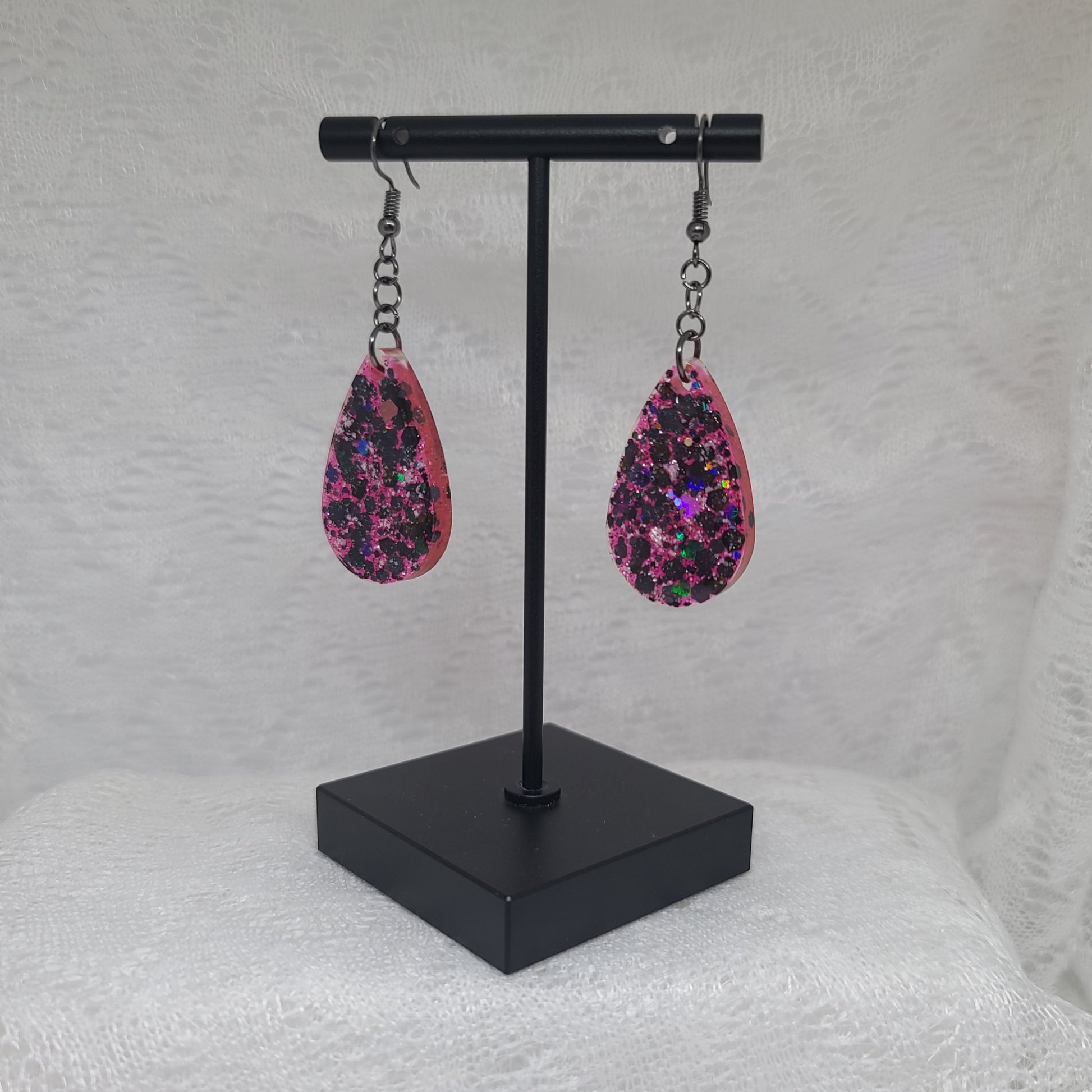 These Pink & Chunky Black Glitter Teardrops Earrings will bring the drama! Make a statement with these attention-grabbing earrings, featuring a dazzling mix of pink and black glitter, sure to make you shine in any situation. Bring the house down with style!