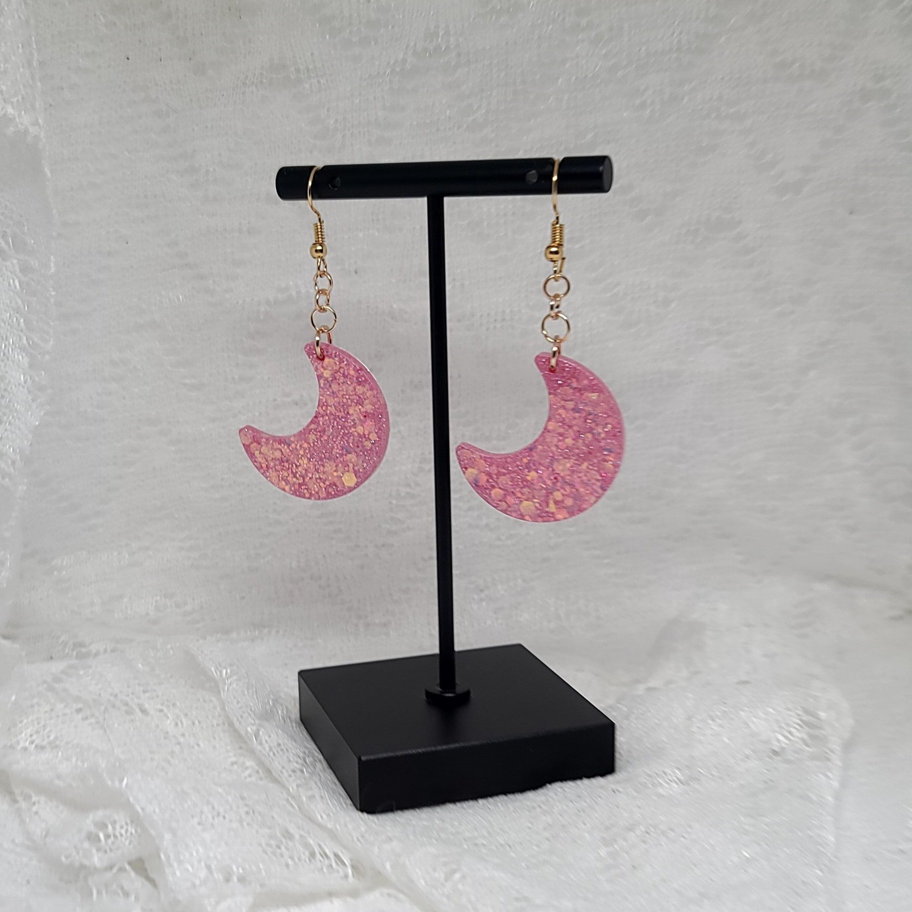 Make a statement with our Pink Chunky Glitter Moon Dangle Earrings! These ear-catching dangles feature a celestial-inspired design with a sparkle-packed punch, perfect for showing off your out-of-this-world style! Shine on, sparkle-lovers!