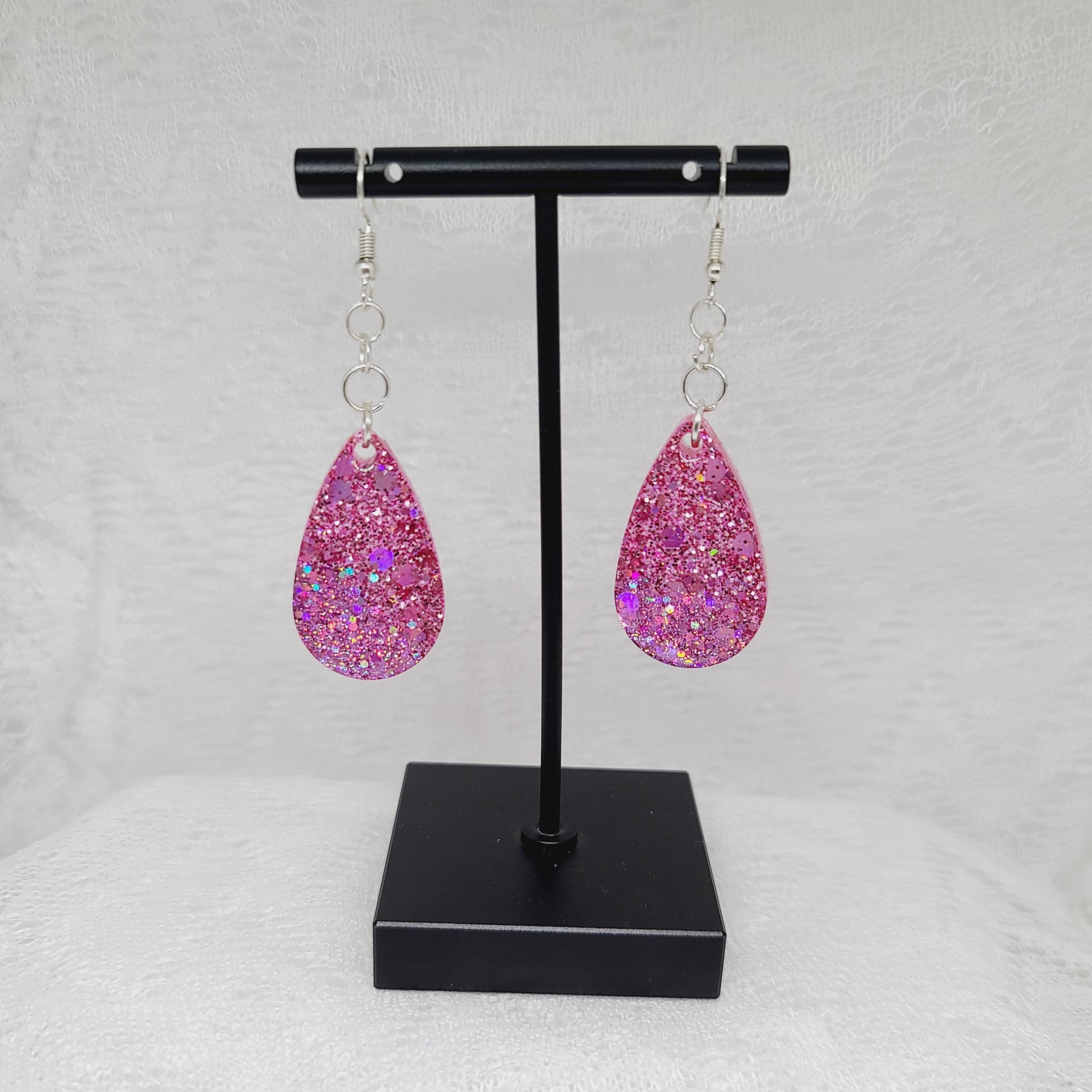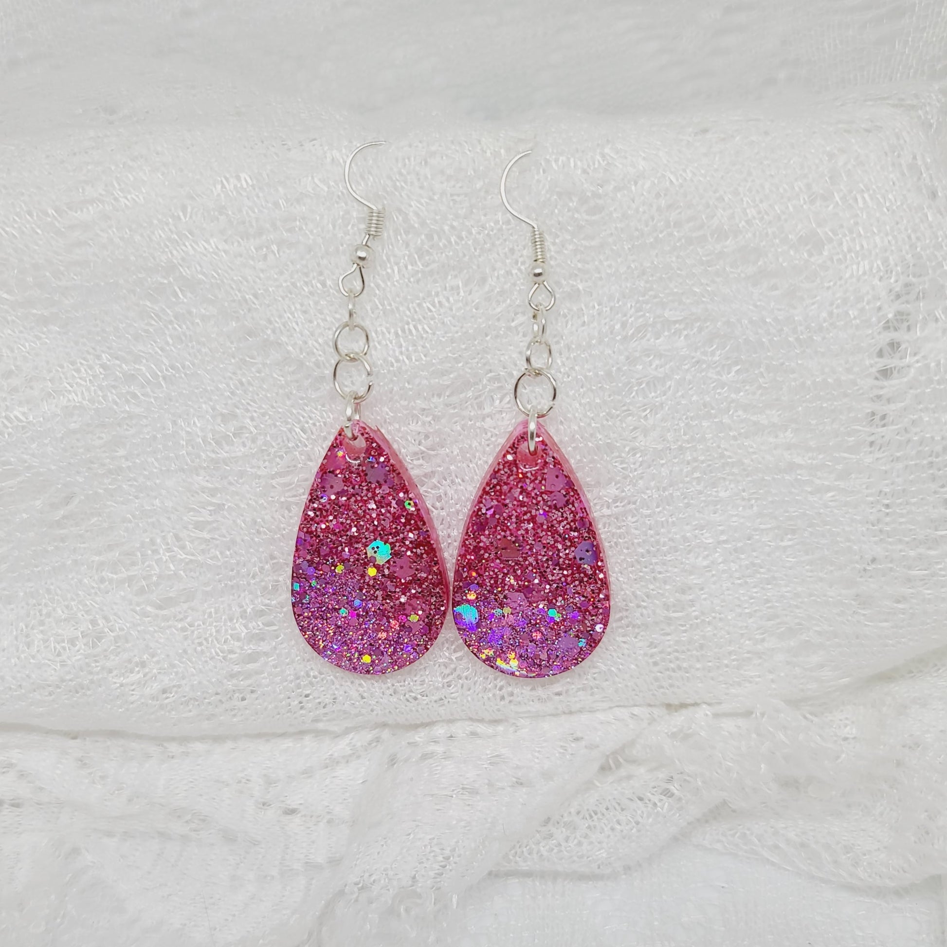 Pink Glitter Teardrop Dangle Earrings
