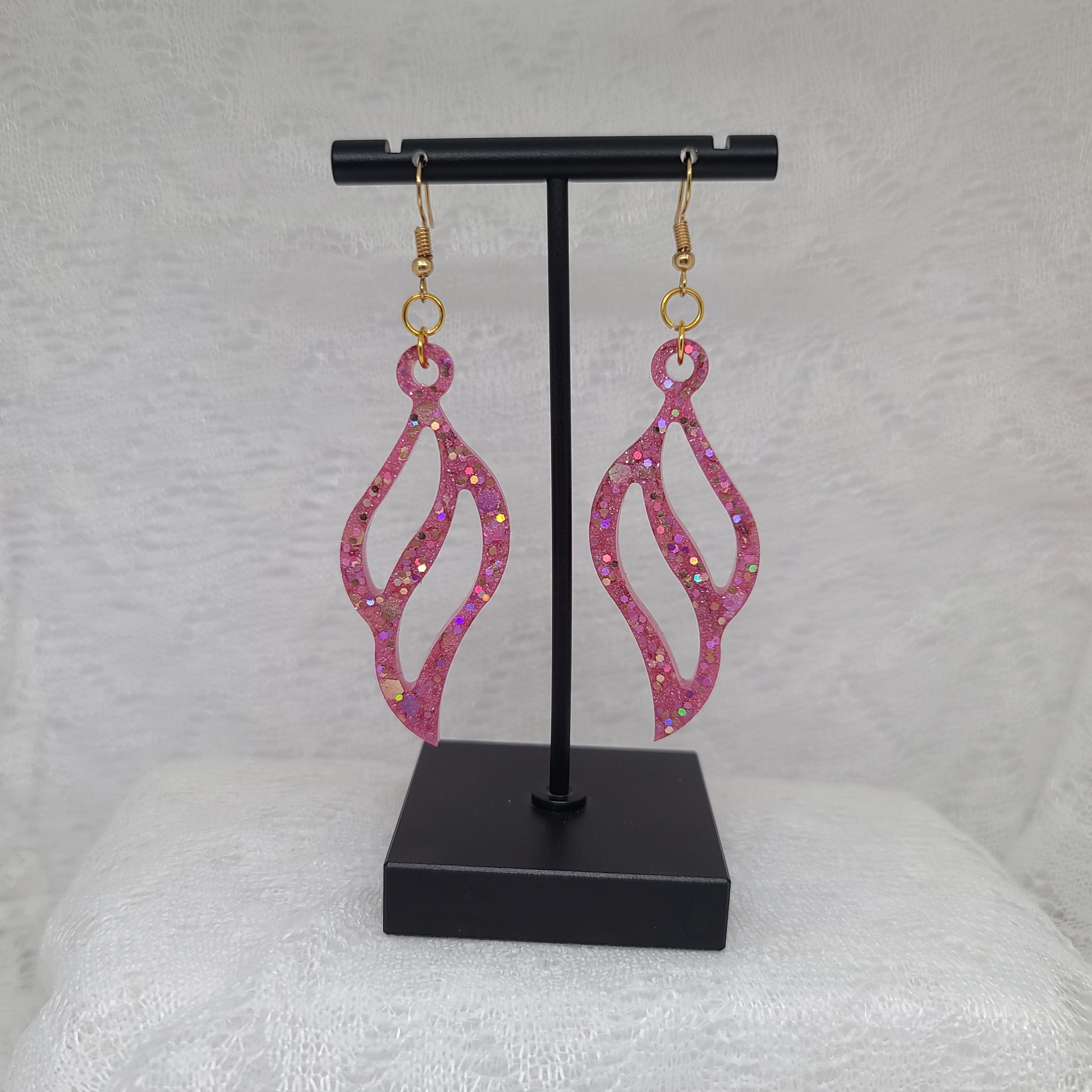 Pink & Gold Feather Shaped Dangle Earrings