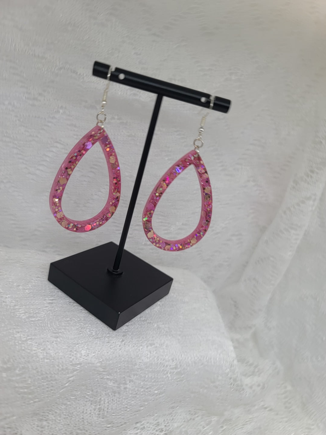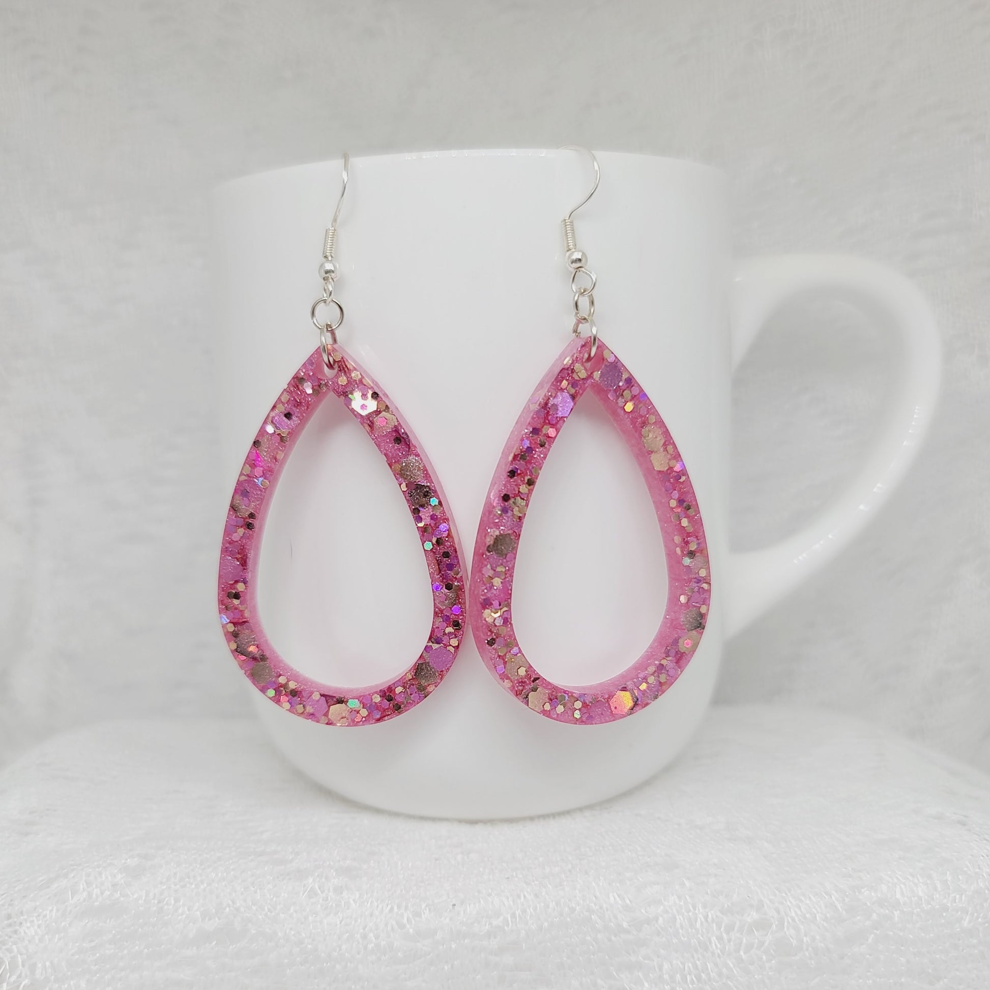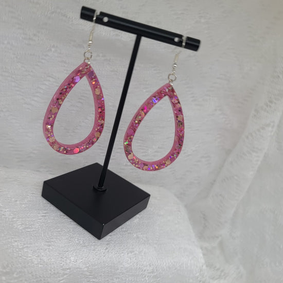 Pink & Gold Glitter Teardrop Hoop Earrings