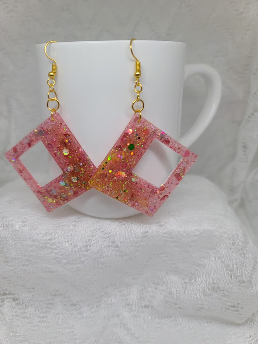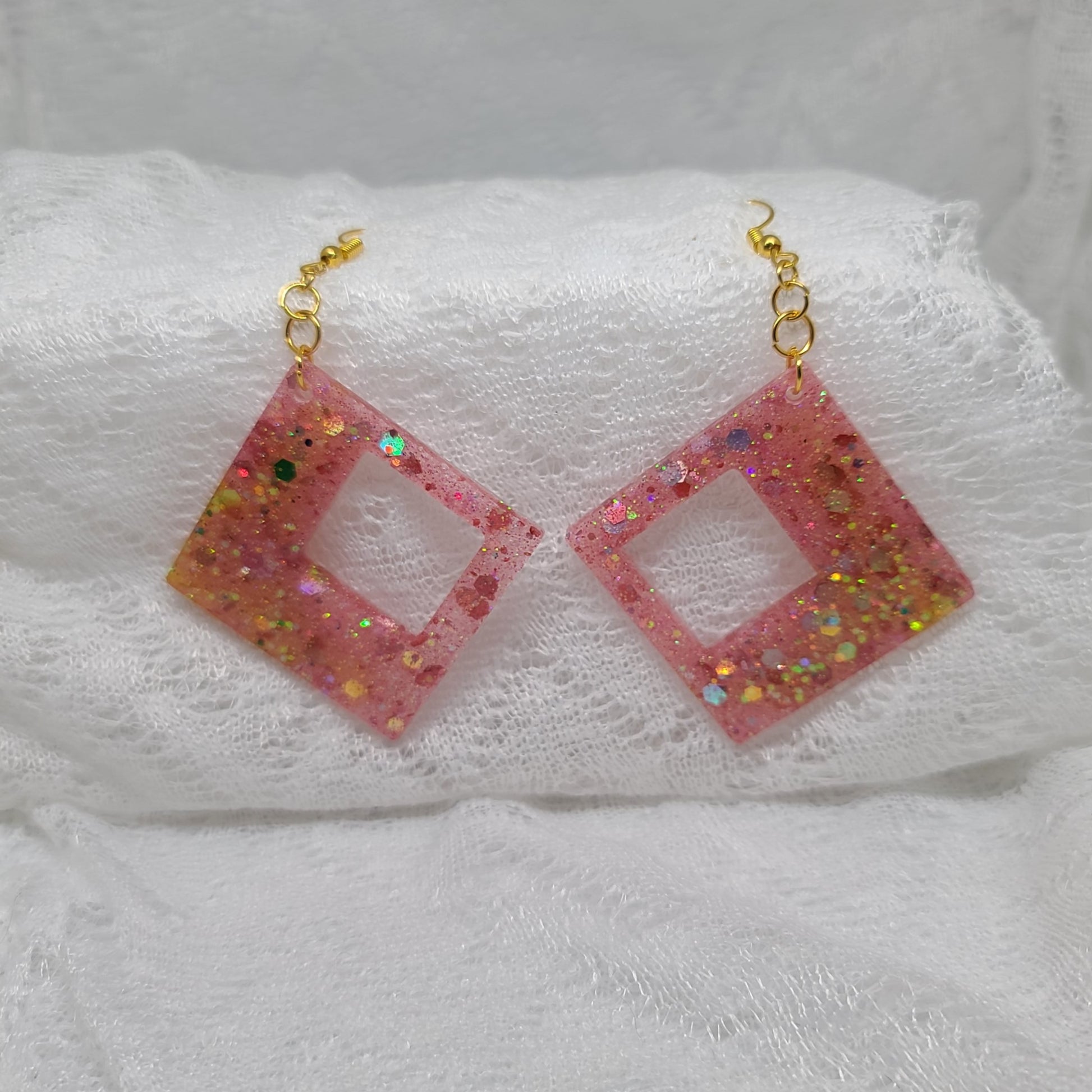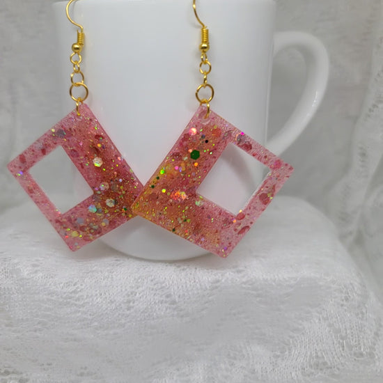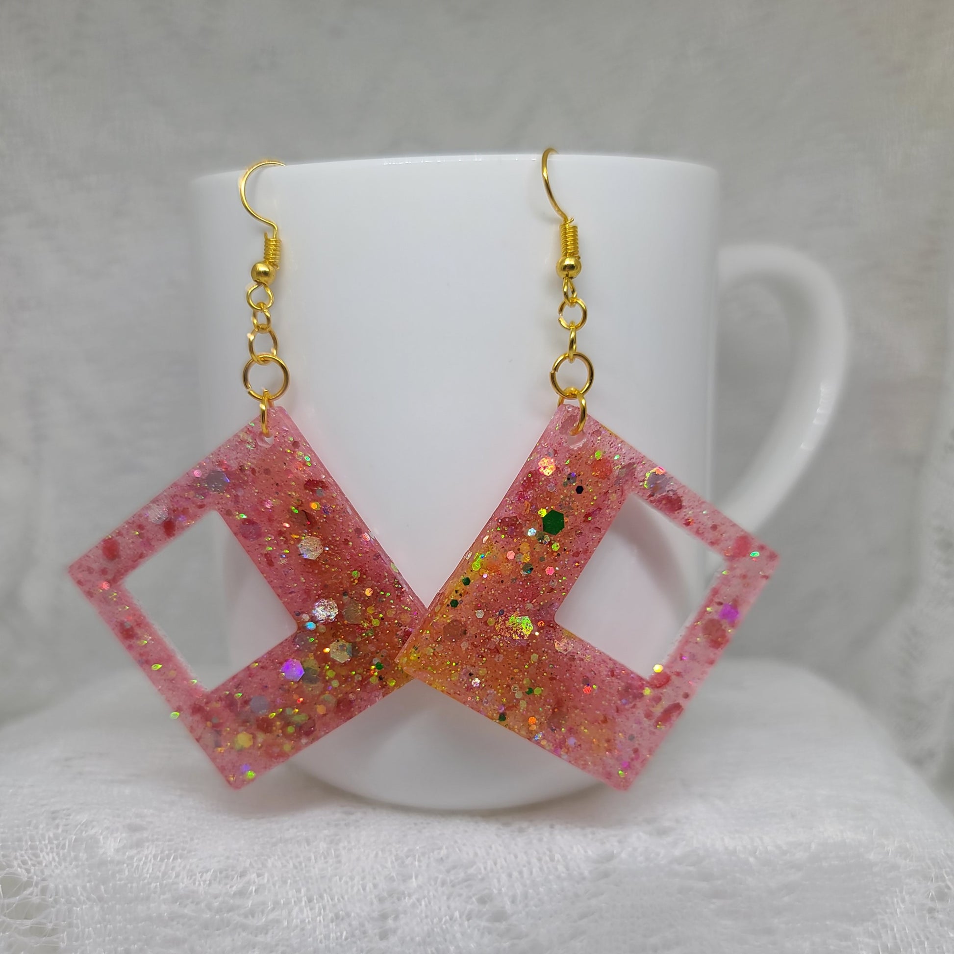 Pink, Multi-Colored Chunky Glitter Statement Earrings