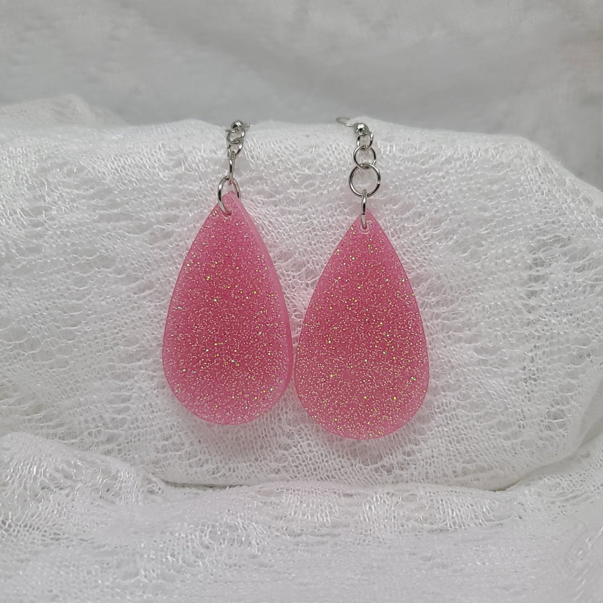 Pink Sugar Glitter Teardrop Earrings