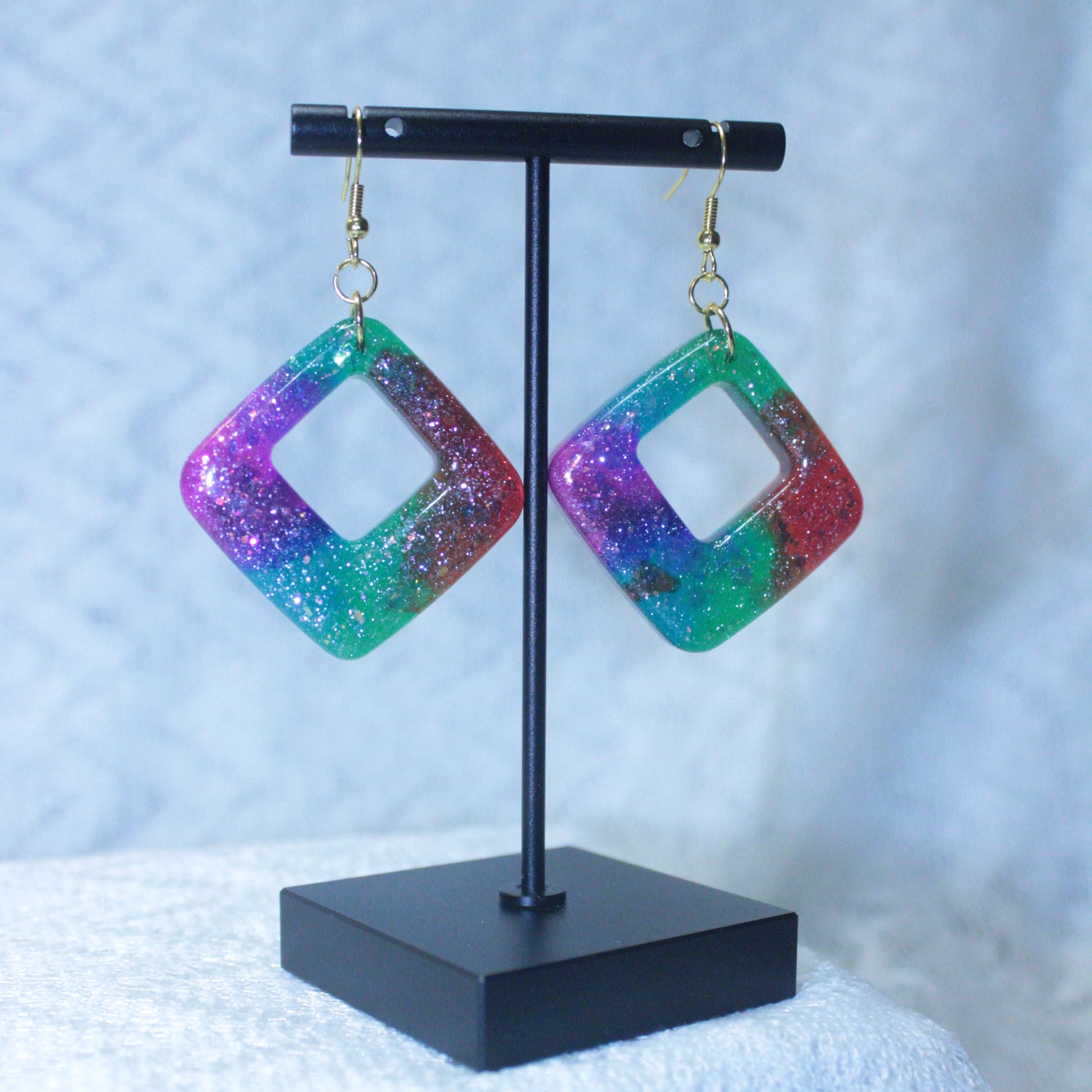Rainbow Glitter Diamond Shaped Dangle Earrings