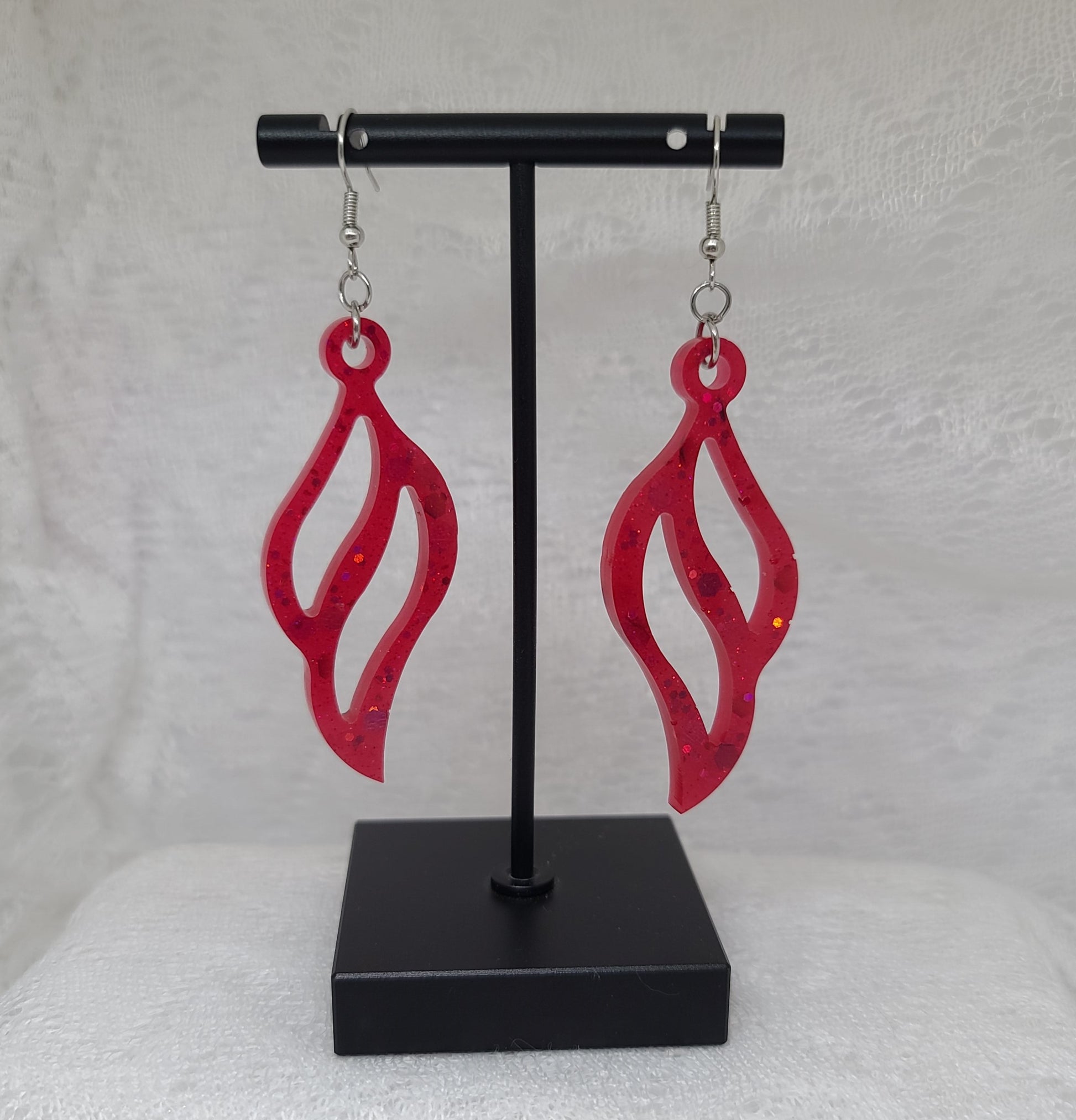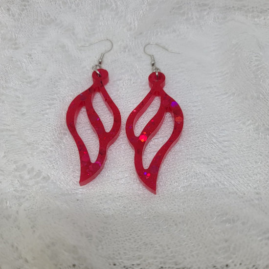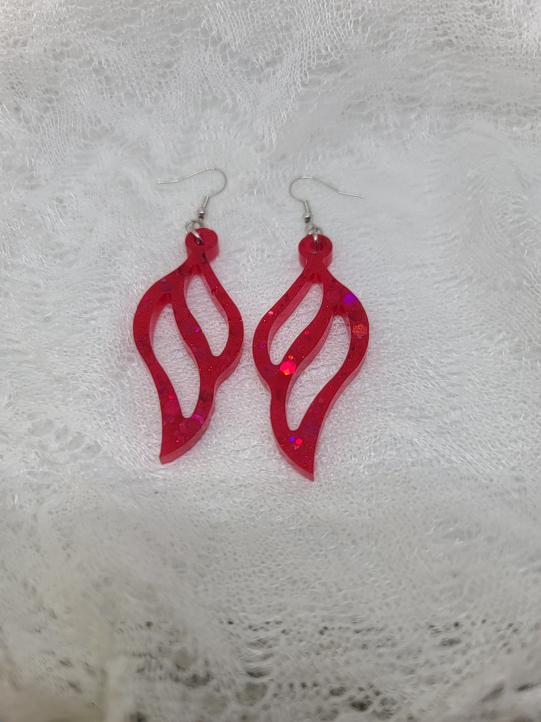 Red Glitter Feather Shaped Dangle Earrings, Wings