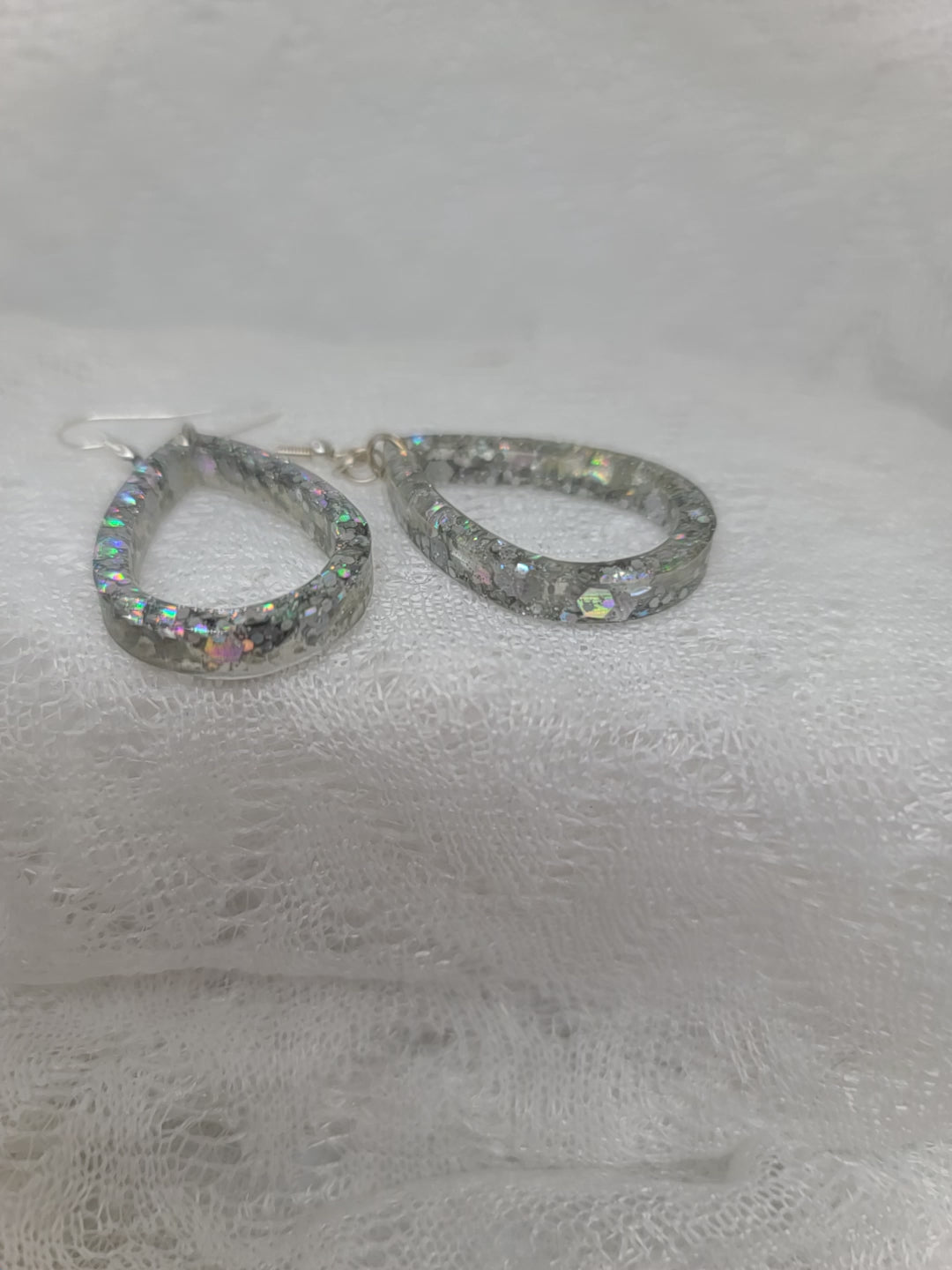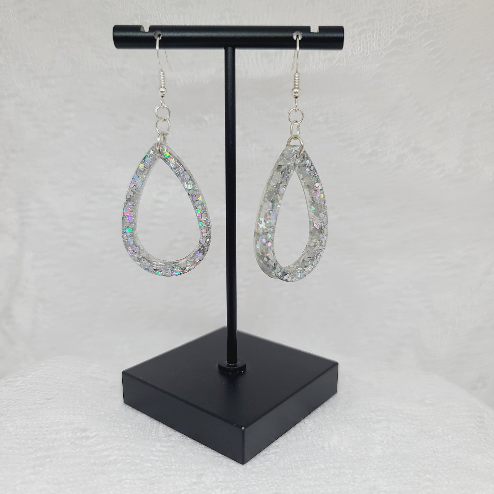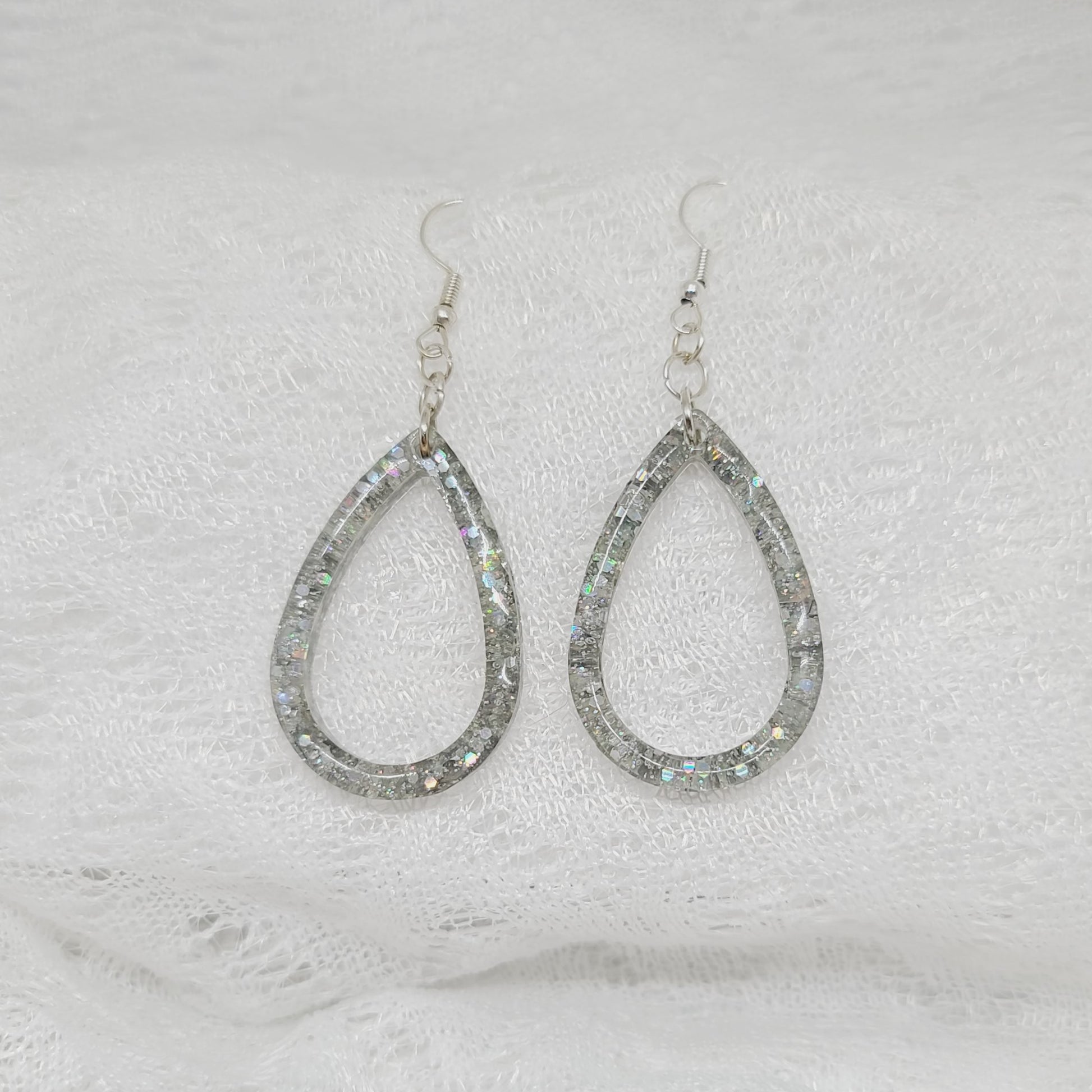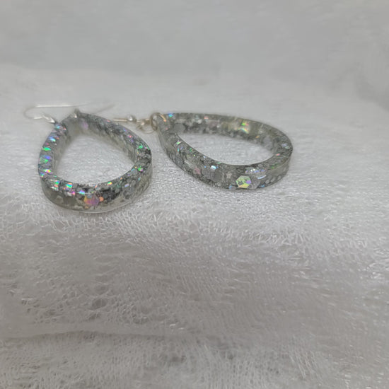 Silver Chunky Glitter Teardrop Dangle Earrings
