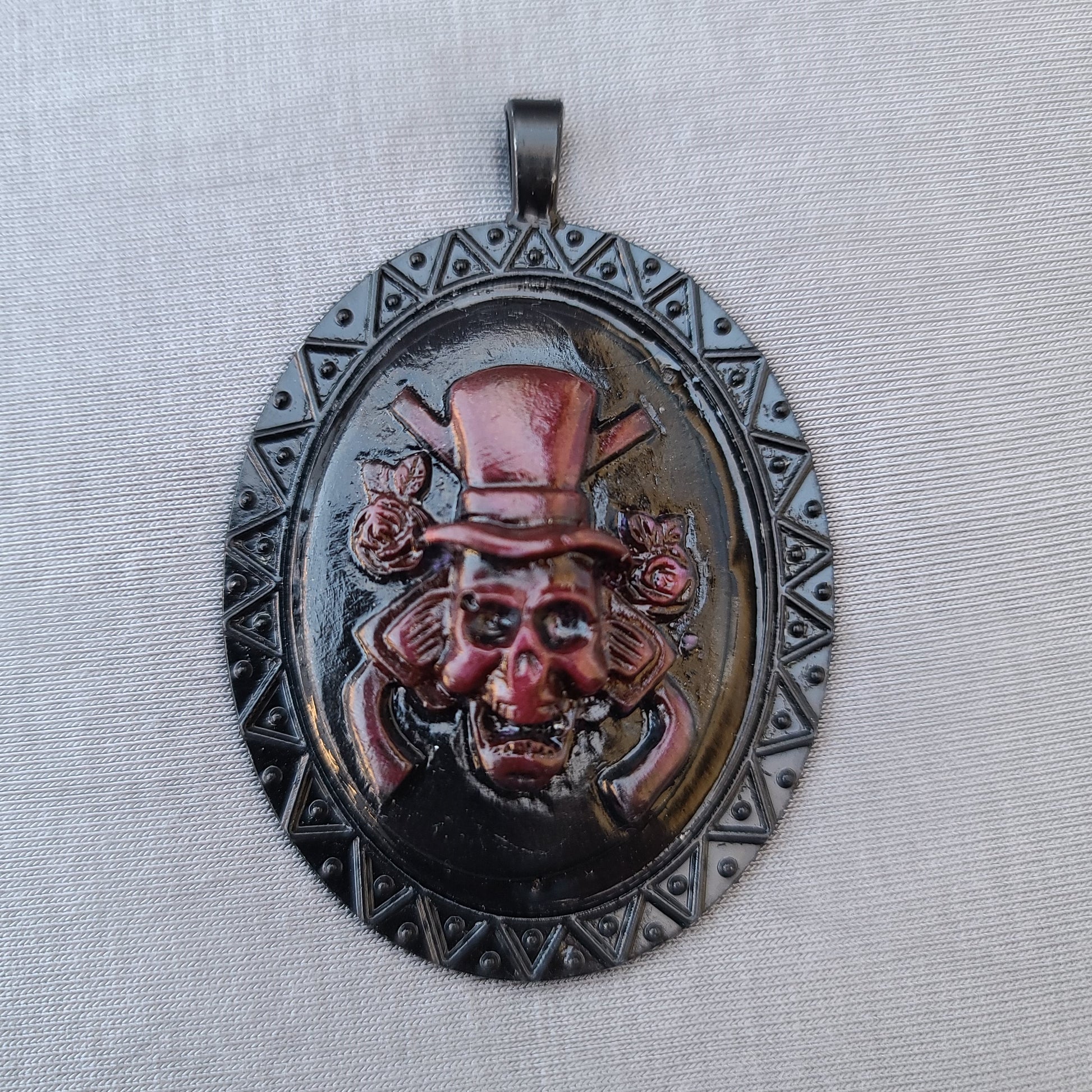 Skull Gunman Dark Red Pendant Necklace